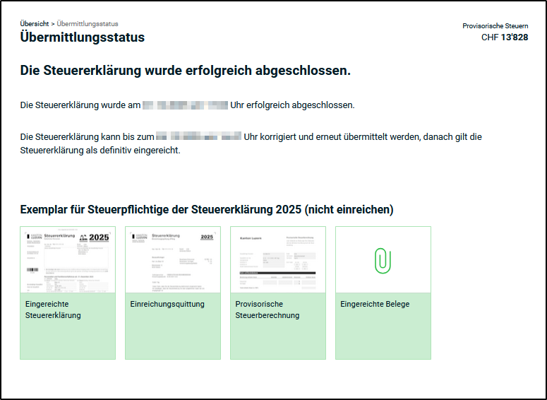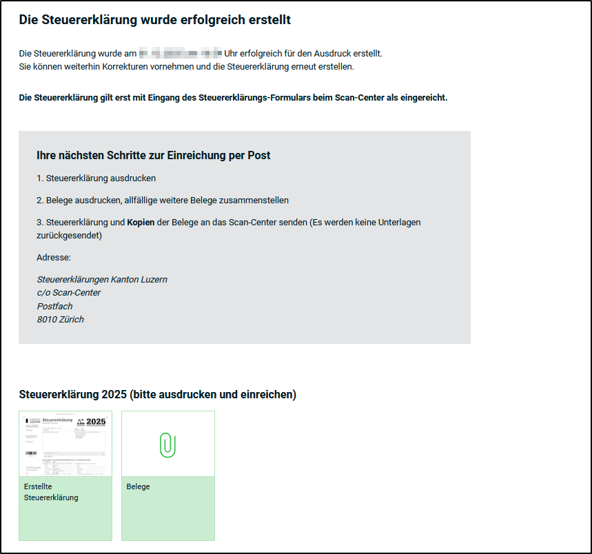 - Sie werden daraufhin direkt zur eingereichten oder erstellten Steuererklärung weitergeleitet und können diese dort einsehen oder als PDF ausdrucken.