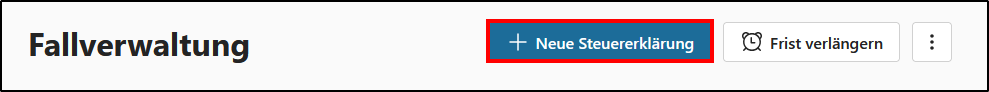 - Klicken Sie in der Fallverwaltung auf <+ Neue Steuererklärung>.