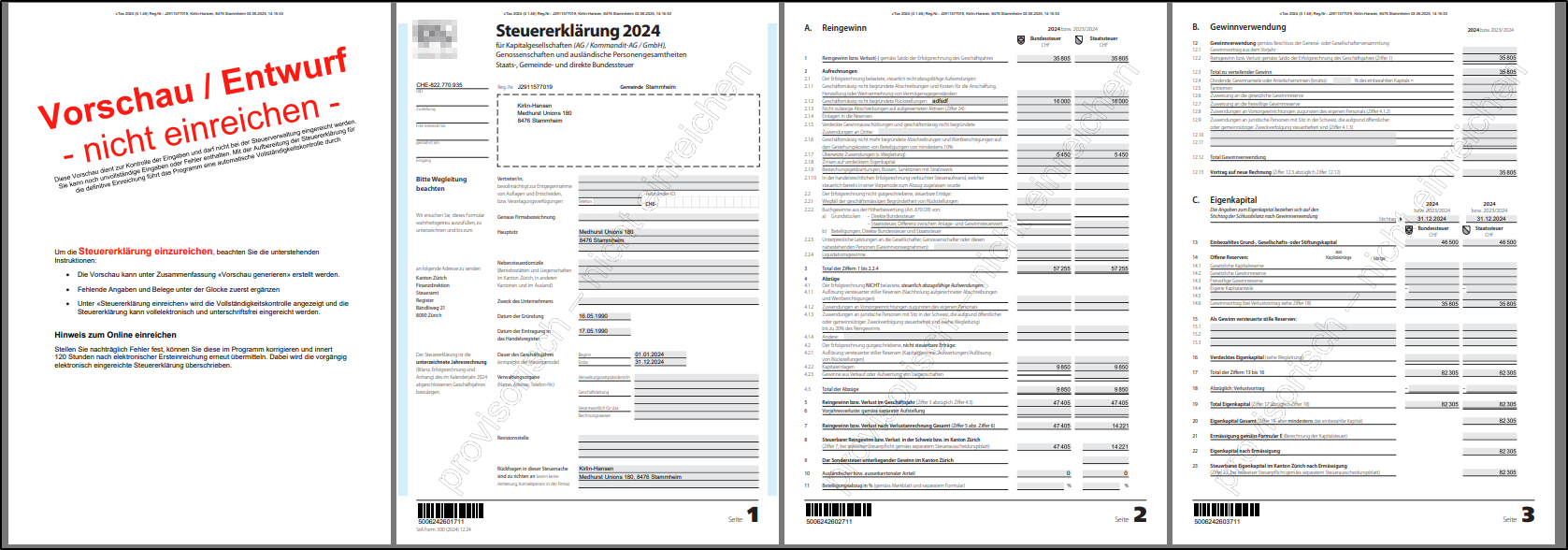 Hinweis: Die Dokumente der Vorschau können nur elektronisch eingereicht werden. Bitte reichen Sie diese Vorschaudokumente nicht bei der Steuerbehörde ein.